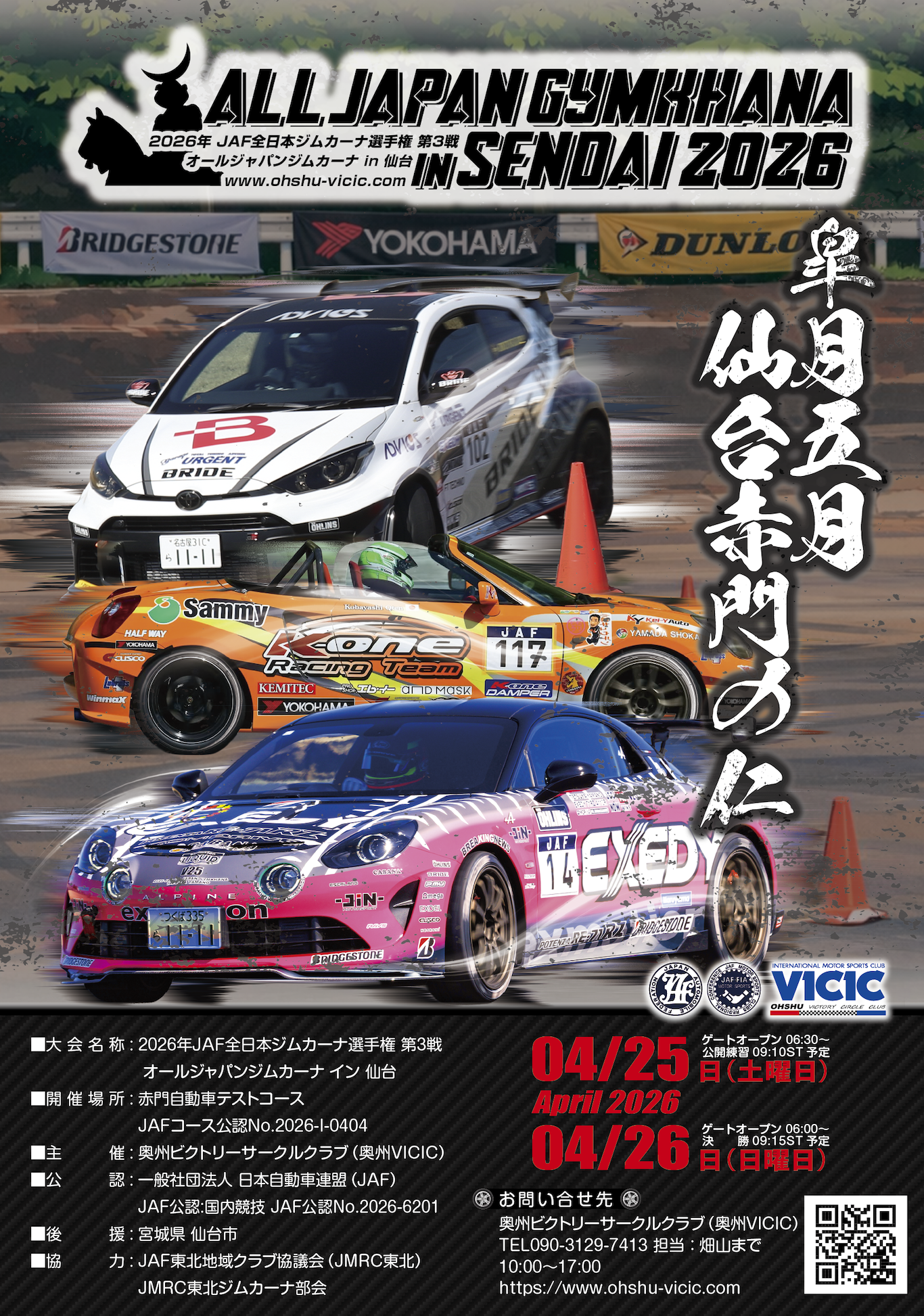 JAF全日本ジムカーナ仙台大会のお知らせを公開しました。